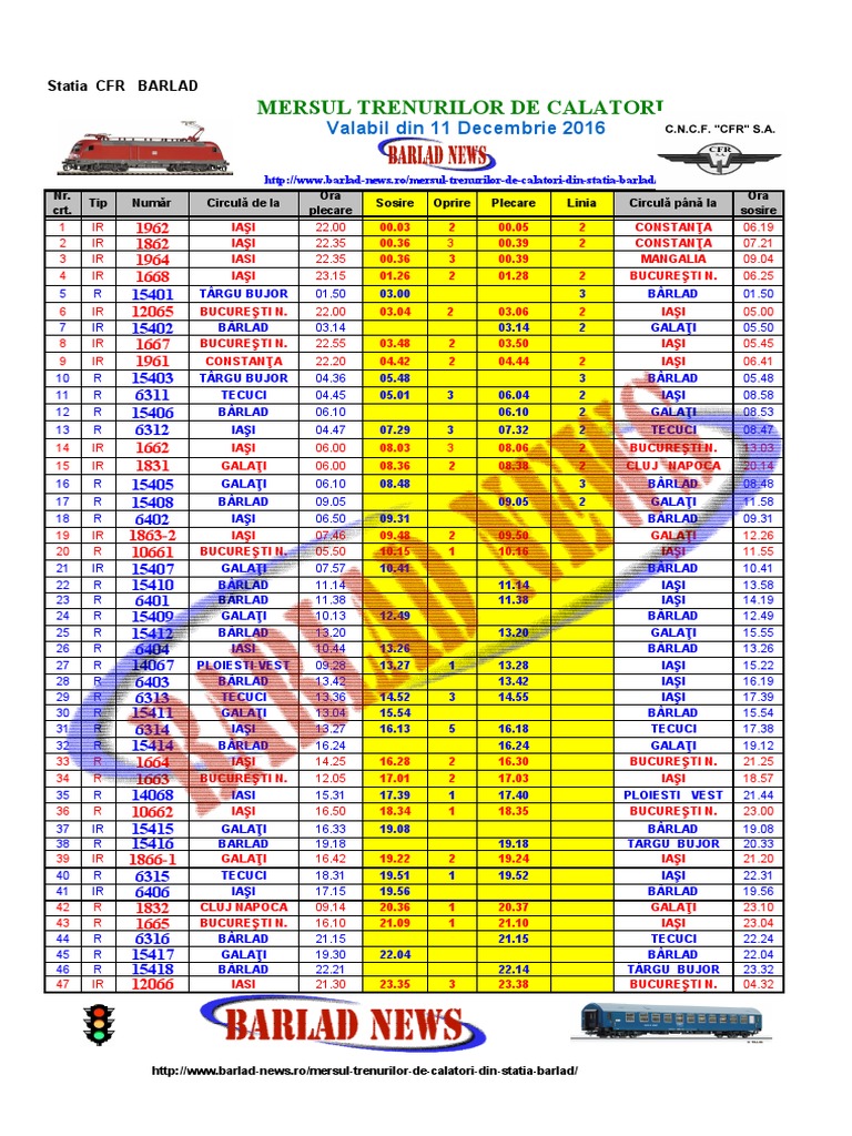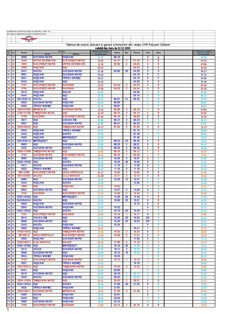 Noul Mers Al Trenurilor Din Gara Roman Ziarul De Roman Source from : http://www.ziarulderoman.ro/noul-mers-al-trenurilor-din-gara-roman/ Noul mers al trenurilor va intra in vigoare duminica si va aduce cateva schimbari. Tren bucuresti nord cristesti pascani hc. Mersul trenurilor de călători 2020. Dacă aveți posibilitatea de a rezerva în avans, va fi probabil pentru a găsi bilete de avion ieftine de tren de la paşcani la bucurești pentru 58,23 ron. De la pașcani până la bucurești nord, cu plecare după 19.10.2020 0:00.