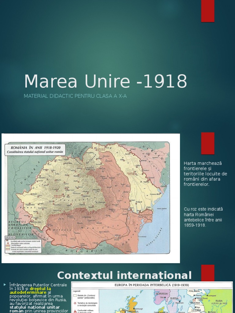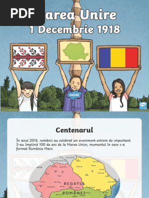 vizitati articolul complet aici : https://ro.scribd.com/doc/109864909/Marea-Unire-Din-1918-power-point O unire obtinuta cu sacrificii, prin razboaie si revolutii. Să vedem ce vor fi învățat din ele în 2018, anul sărbătoririi centenarului. La 100 de ani de la marea unire cultura civică se ocupă de formarea tânărului atât în calitate de cetățean al statului din care face parte, cât și în calitatea sa de ființă unică și demnă.